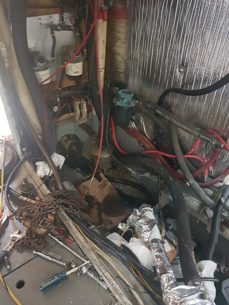 Meantime, the engine was pulled today!!! Yep, our boat is without a heart right now… the new engine will be arriving next week and then we will need to do the whole process in reverse! A new engine was not originally on our purchasing list and deciding to buy it was tough – it is a big chunk of money we didn’t think we would spend. Owen was worried about new strange sound it was making and compression tests suggested not all was right. Well thank heavens we ordered it a couple of months ago as we fired it up last Sunday only to have it run for a few minutes before dying – Owen tried to restart it only have a horrific metal grinding noise instead of a running engine – catastrophic failure!!!