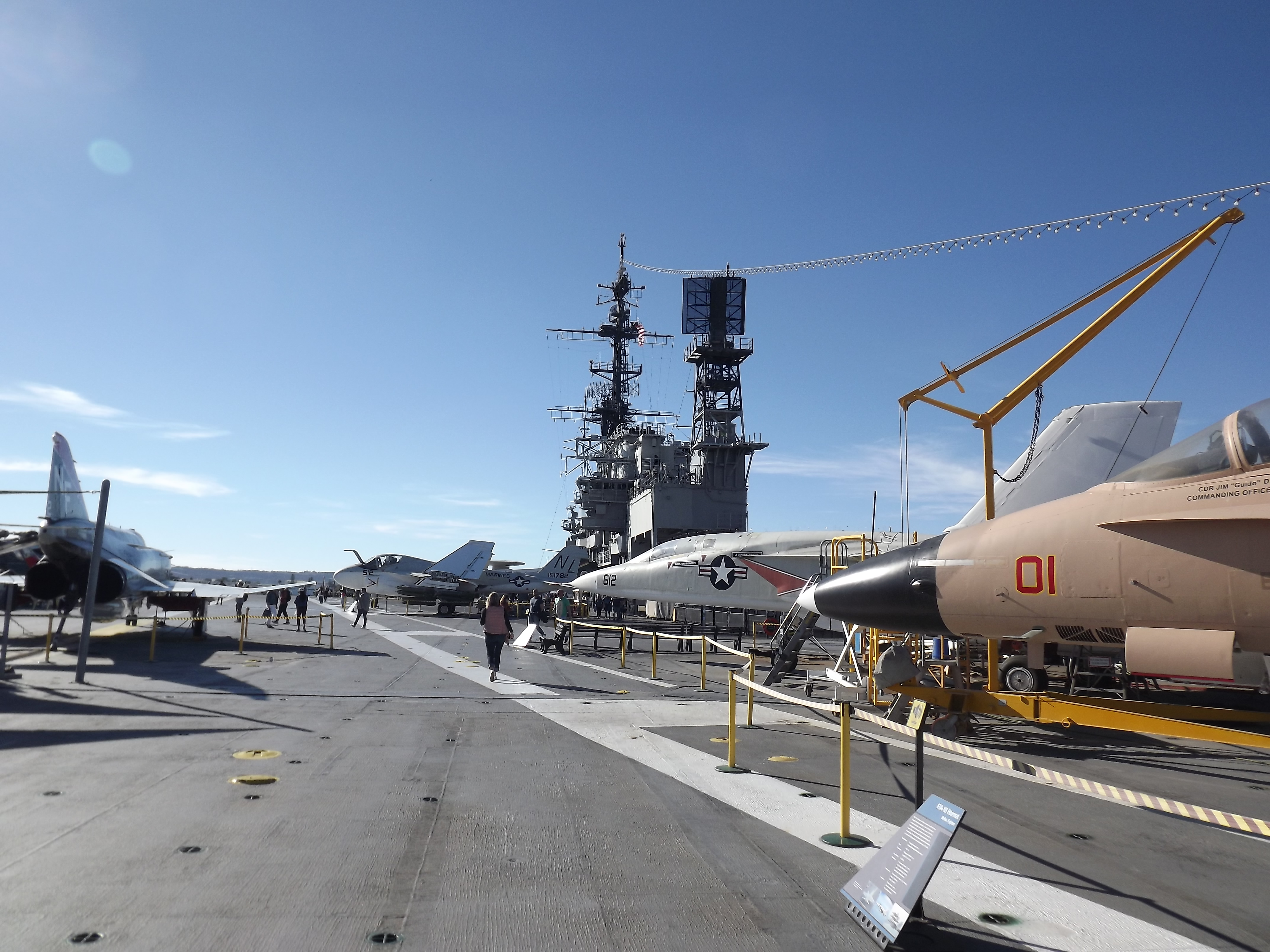 Our next day saw us begin our tourism spree!!! Our first stop in San Diego was the USS Midway Museum – a decommissioned aircraft carrier and pretty much the coolest way to spend a day. We headed over around noon thinking that if we didn’t stay there too long, we might also check out the Maritime Museum – yeah – no – we were pretty much chased off the ship when they closed at 5 – having still not seen several of the display areas and probably 2/3 of the planes on the deck!!! The ship is literally a small, floating city that would have housed about 4000 people. We wandered into the sleeping quarters, the mess area (where they may also have assembled a bomb if space was needed), the galleys, the hospital, dentist, brig, post office, bank, NCIS office, officers quarters, captain quarters, the engine room – it went on and on!!! We finished up our tour with a trip to the bridge – truly its own aircraft tower! We could have easily spent another hour or two there and it is something that we would (and did) recommend to everyone! We finished the day up with a stop for tacos (and craft beer) and a wander through the Seaport Village – a collection of stores, restaurants and an old carousel near the waterfront.
