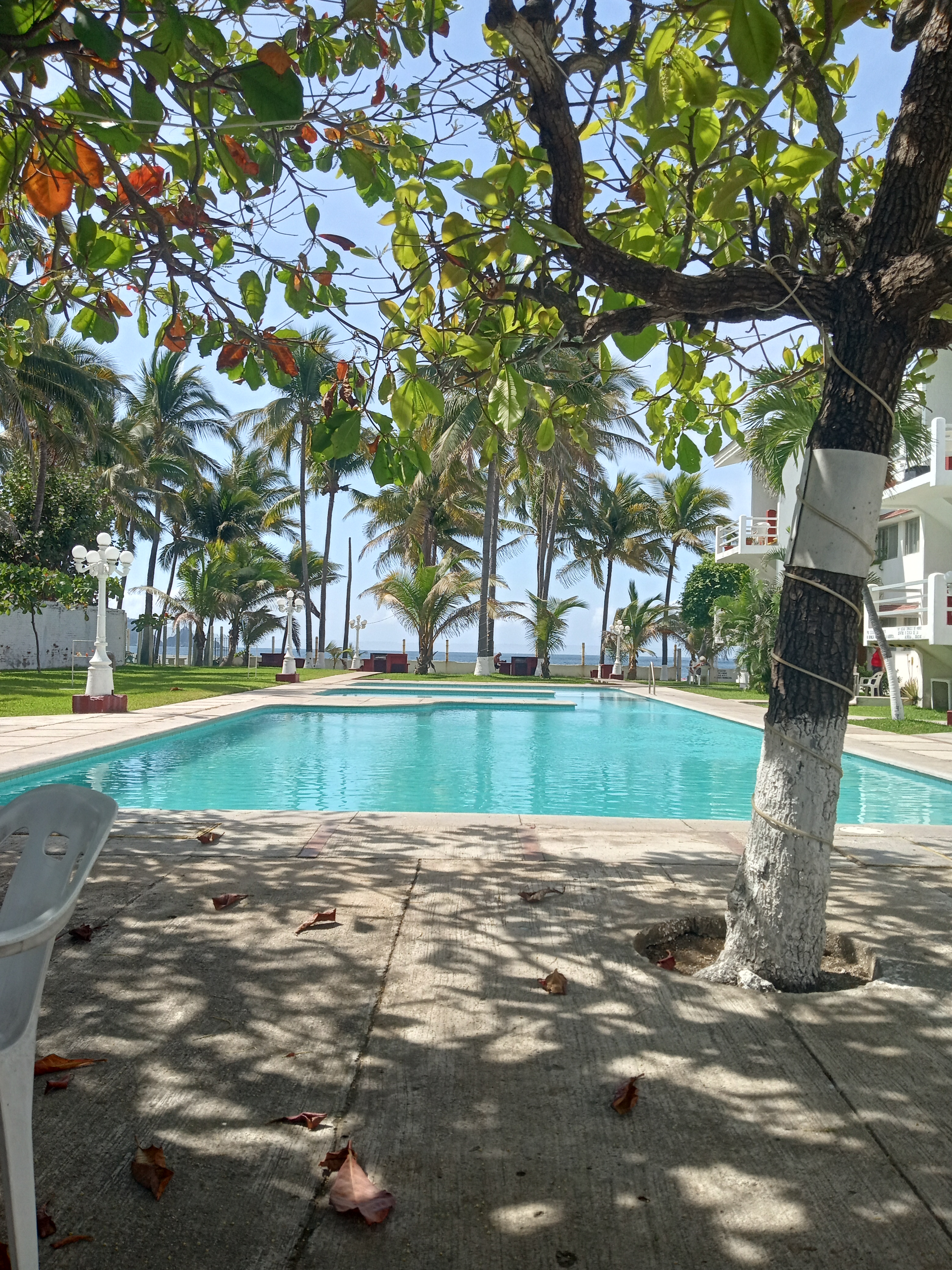 Harvey and Linda were set to catch a bus on the Monday morning from Melaque and decided that morning that, as they did not want to worry about getting themselves and all of their bags to the beach in Barra and then by cab to Melaque in order to make their bus, they would stay at a unit at their Mom’s hotel that night– this would give them a night with air conditioning and they would be a very short cab ride to the bus. It had been quite a scene that morning – we were again unable to raise the water taxi so we had all four of us, all of their bags, our back pack and the garbage loaded into our very small dinghy!!! That night we left everyone at the hotel and made our own way back to Barra and our suddenly empty boat!!