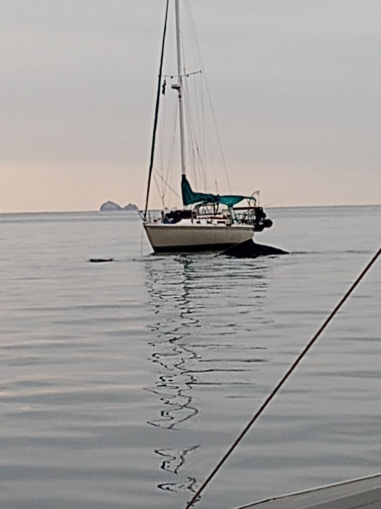 The second morning we were in Tenacatita we were just waking up when I heard a “whoosh” and then another. I popped up on deck and found two humpback whales just off our bow – they were so close. Of course, I didn’t have my camera and missed taking a picture. A few minutes later I was sitting out enjoying the peaceful morning when I heard the whoosh again and watched the whales surface right beside our neighbors’ boat – this time I got a picture! Unfortunately, our neighbor left before I had the chance to head over to get their email address but managed to track them down though social media and were able to send the pic their way.
