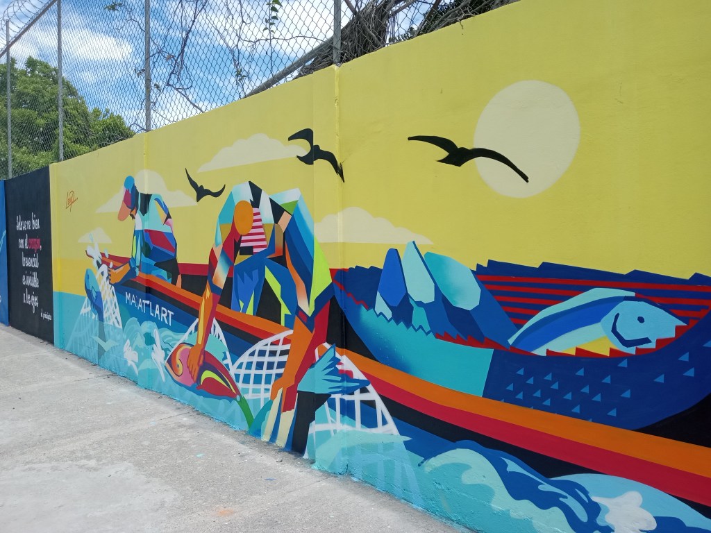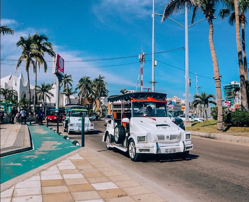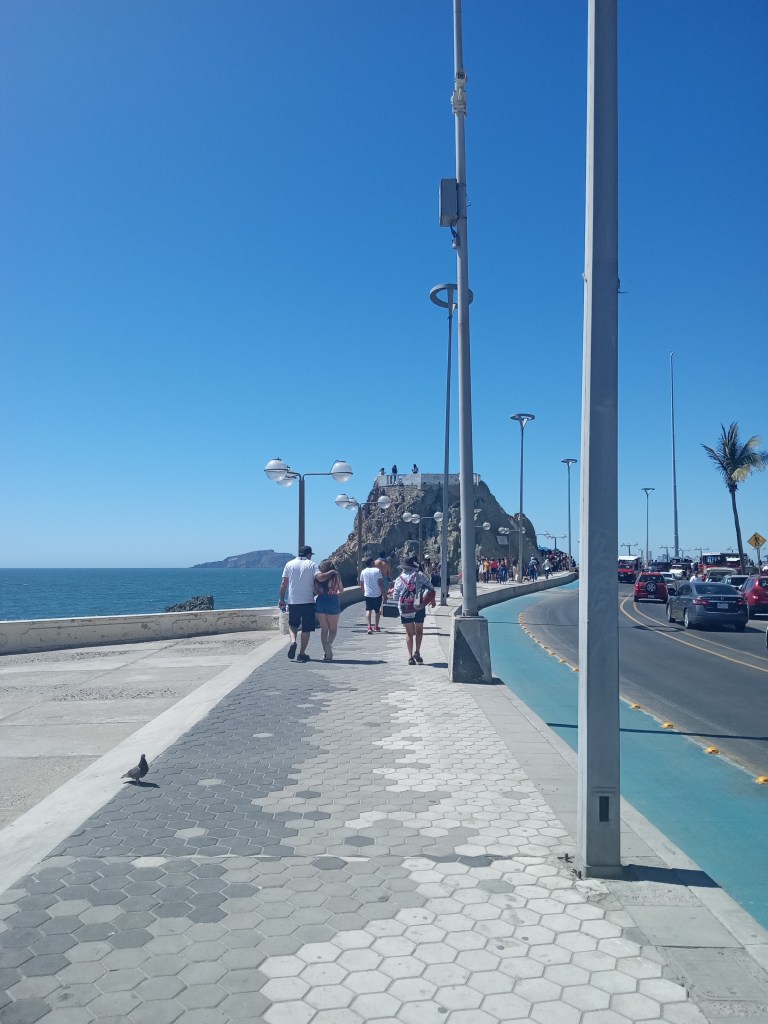 That first night, we were trying to get our dinghy raised up in its hip-tie bridle and it was super hard to grind up for some reason. We figured out why the next morning when we went to lower the dinghy – the halyard was completely jammed into the block at the top of the mast. We put another halyard on the bridle and got the dinghy off the jammed halyard and lowered. I found a boat store on google and we decided to head out to buy a new block. We dropped our laundry off on our way out and were thrilled when she said she would run it back to the Club once it was complete (she left it with the security guard, saving us from dragging it back later in the day!). We knew it was going to be an hour or so walk to the boat store but saw it as an opportunity to explore. We wandered out past the main port area, checking out murals that were just being painted along the wall surrounding the port. Unfortunately, at some point I was walking along when suddenly I was on the ground, with a cracked phone to boot!!! I had crossed over a driveway that had a strip of super slippery tile going up the center of it and before I knew what was happening, my feet went out from under me sideways and I landed hard on my wrist and hip (causing the aforementioned cracking to the bottom corner of the phone I had been carrying). Luckily nothing was broken (though I did have a doozy of a bruise on my hip for weeks!). We finally made it through a very commercial area, over the train tracks (with a full-on slum built up on other side), through an industrial park and finally to the boat store – the closed boat store!!!!! It was Semana de Santos that week (the week leading up to Easter Sunday) and even though it was Thursday, they were closed – nothing on their website to indicate it but closed all the same!!! We opted to call an Uber at that point and had them drop us off back in the Centro Historico. We wandered around there a bit more and then headed back out to the Malecon where we headed out the opposite direction to the Club and explored a bit more. We ended up having dinner at a lovely lobby bar restaurant in a hotel on the Malecon (great burgers!) and then grabbed a Pulmonia back to the boat. Pulmonias are really cool, open air taxis – many are made from the frame of a bug. When they were first introduced in Mazatlan in the 1960’s, the taxi drivers tried to fight back against this new form of transport by telling people they were going to get Pneumonia from riding in the cars – the drivers decided if you can’t beat em, join em – and named the cars Pulmonias (Spanish for Pneumonia!).
