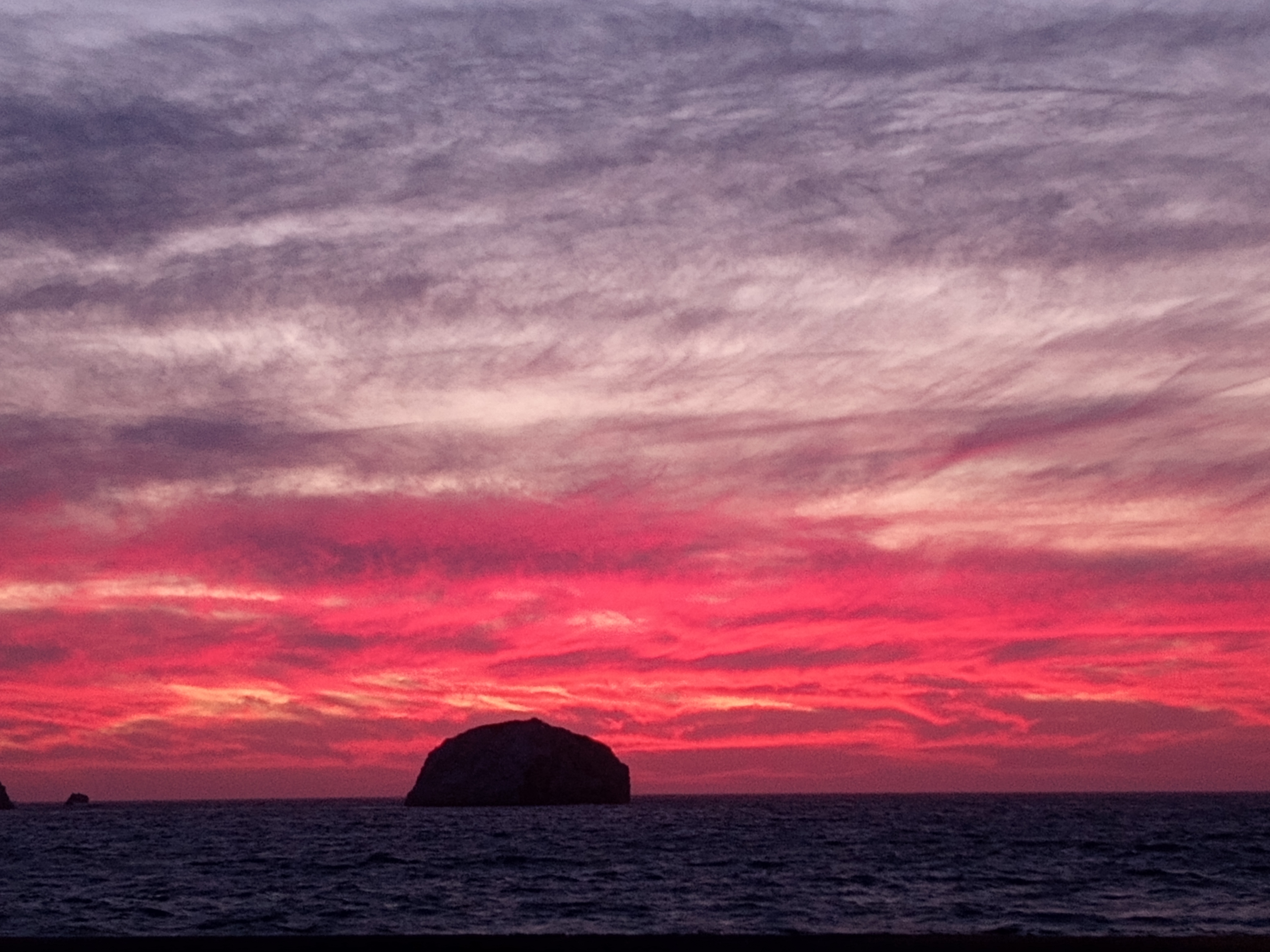 We departed from La Cruz in the mid-afternoon, headed for an overnight trip to Matanchen. Unfortunately, the wind was not in our favour (or was non-existent) and we had to motor much of the trip. We approached Matanchen at sunrise and were thankful for our radar which brought attention to the dozens of fishing boats anchored or trolling just out of the anchorage (most with no lights!). We wove our way in and set the anchor a fair distance off the beach. Unfortunately, Matanchen has developed a bit of a reputation for being a spot that dinghies have been stolen lately – there was even a situation earlier this year where 3 men boarded a boat in order to cut the dinghy (along with the 15hp Yamaha outboard – which is what they really want) from the dinghy davits. The boatowner confronted them and was injured in the process. In that situation the dinghy was actually recovered eventually and I believe charges were even laid but the frequency with which it happens (even knowing that they really have no interest in our little dinghy or 2.5 hp Suzuki!) meant that we were not excited about launching the dinghy. There is not a lot to see on shore – just a couple of restaurants – and the bugs are apparently terrible – so we opted for staying on board instead. In addition, while we were in La Cruz I had been cleaning the stainless steel stancions on the boat and had somehow completely wrenched my back (I knew cleaning was hazardous to my health!). If I sat for even a few minutes, my back would lock up and getting out of whatever position I was in would be agony – the only way I was comfortable was lying on my side. And so that is what I did – for 3 days – curled up on the settee watching movies. We had not intended to stay there so long but the weather was not great and I had been in so much pain on the first night passage that I just needed a couple of days to get things loosened up.