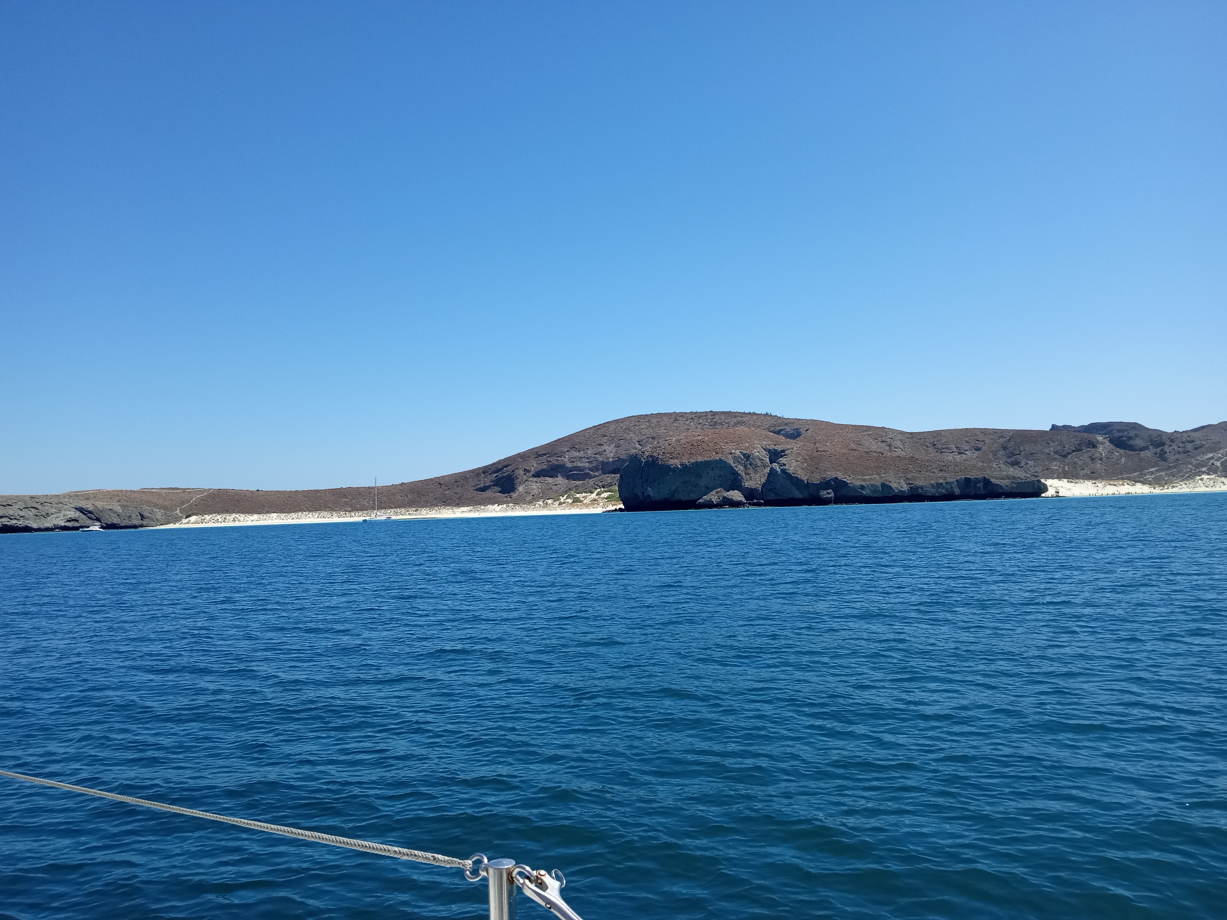 We knew we wanted to get in and out of La Paz quickly but could not bring ourselves to get moving the next day!! We spent the entire day on the boat (I may or may not have even gotten out of my pajamas) watching movies and cleaning up from the passage. We paid for that with a couple more days of chaos. Over the course of the next couple of days, we got so much accomplished!! We got to the boat store to buy the new block to replace the spinnaker block that had been jammed lifting the dinghy. Owen went to the barber and I found a great little salon to finally get my hair cut. I walked up to the Soriana to do a provisioning shop (and so wished I had called an Uber to head back to the boat – I nearly pulled my arms out carrying everything back!). Owen went in hunt of oil and oil filters and spent an entire afternoon traipsing from store to store, never managing to come up with the filters! We did three runs with our trusty little cart to fill diesel jugs and 4 runs to get water. We also fit in one last visit to Viejo for more of those tacos! Finally, on our third day in La Paz, we motored out of the harbour, fighting current the whole way, and anchored in Bahia Falsa.