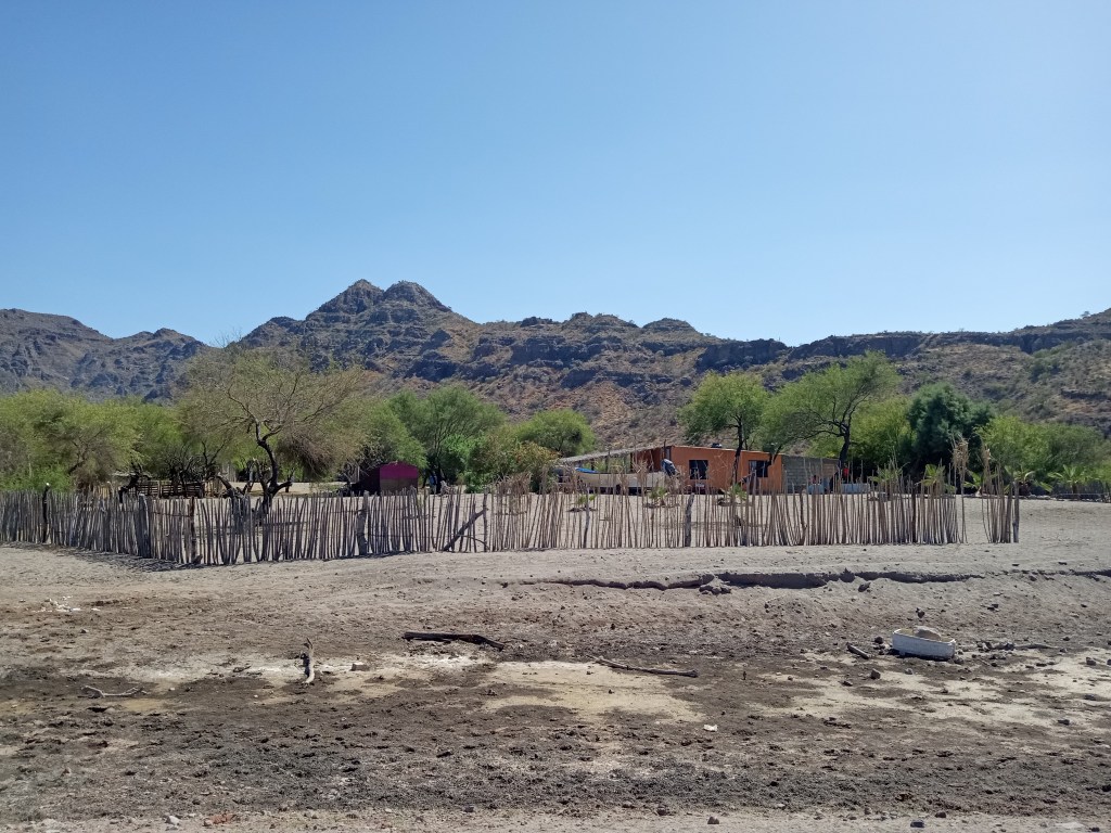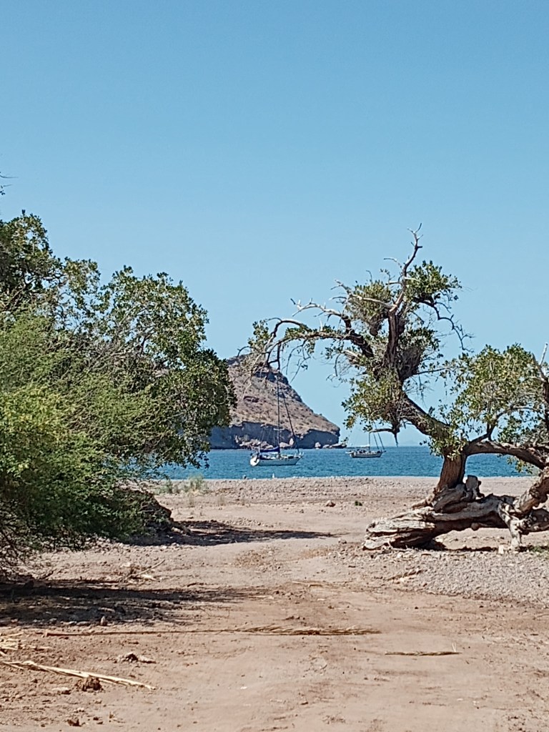 We left early the next morning for the jump to Agua Verde, motoring or motor sailing and arriving in Agua Verde about 2pm. We had been anxious to make this bay, having heard how beautiful it was, and it did not disappoint. There are several possible anchorages and we chose to tuck into the south side of the bay, just off one corner of the very small village. We took the dinghy into shore and wandered around, in search of the small store that was promised to be there. We were quite disheartened to see garbage and garbage bags just strewn all over, with piles of previously burnt garbage nearly everywhere – we realize that burning garbage may be the only option in this spot, but would it not make sense to choose one small area to do so, rather than just burning it anywhere and everywhere? We found the very small store and grabbed a few provisions and then headed to the beach bar. We enjoyed tacos, with very, very spicy chili paste to top them off and chatted with some of the other boaters. There was a table beside us with 4 guys who were together for a boys’ week – the first time all four of them had been together since they worked together at Boeing 40 years ago!!! When they went to leave, they mentioned that they were going in search of the famed goat cheese – a must find in Agua Verde – I asked them where you go for that and they told us to settle up our bill and join them so we did just that. We walked around to the village and went to the house that was expected to have cheese – sadly they did not have any ready (though I could see that they had some set up in a press at the time). We wandered back the way we had come and a group of people at another house asked where our cheese was – when we explained that they had not had any available, the group sent us off to yet another house. Sure enough, there was one round left and she split it up to sell each group one half – success!!! We made our way back to the boat and enjoyed a nice evening in the cockpit. Owen had a group of boys approach the boat on a stand up paddle board just after we got back but he couldn’t figure out what they were looking for – the next day, we realized that they were taking garbage from the cruising boats – for a 100 pesos a bag! – that explained all the white Costco garbage bags strewn everywhere! The next morning, we went for a boondoggle in the dinghy, stopping by to see how the boys had fared – speaking quietly was a must as they mysteriously all had headaches! Owen decided that this was the perfect place for me to try out snorkeling, something I had not yet done on this trip. We took the dinghy over to one of the more protected beaches and waded over to a spot that promised good snorkeling – sadly we had left it a little late in the day and the sun was already starting to be shadowed in there, meaning that the visibility was not as good as it could have been. It was a good first run for me though, and we considered it a success. We were just back at the beach and getting ready to dinghy back to the boat when we spotted (and heard the bells from) the goats – they were way up in the hills, presumably heading out for a few days of grazing, their little bells tinkling through the air as they went – truly a memorable experience and one of the things that Agua Verde is famous for. We were so sorry to leave this little piece of paradise the next day but it was time to get going further north – our haul out date was looming!