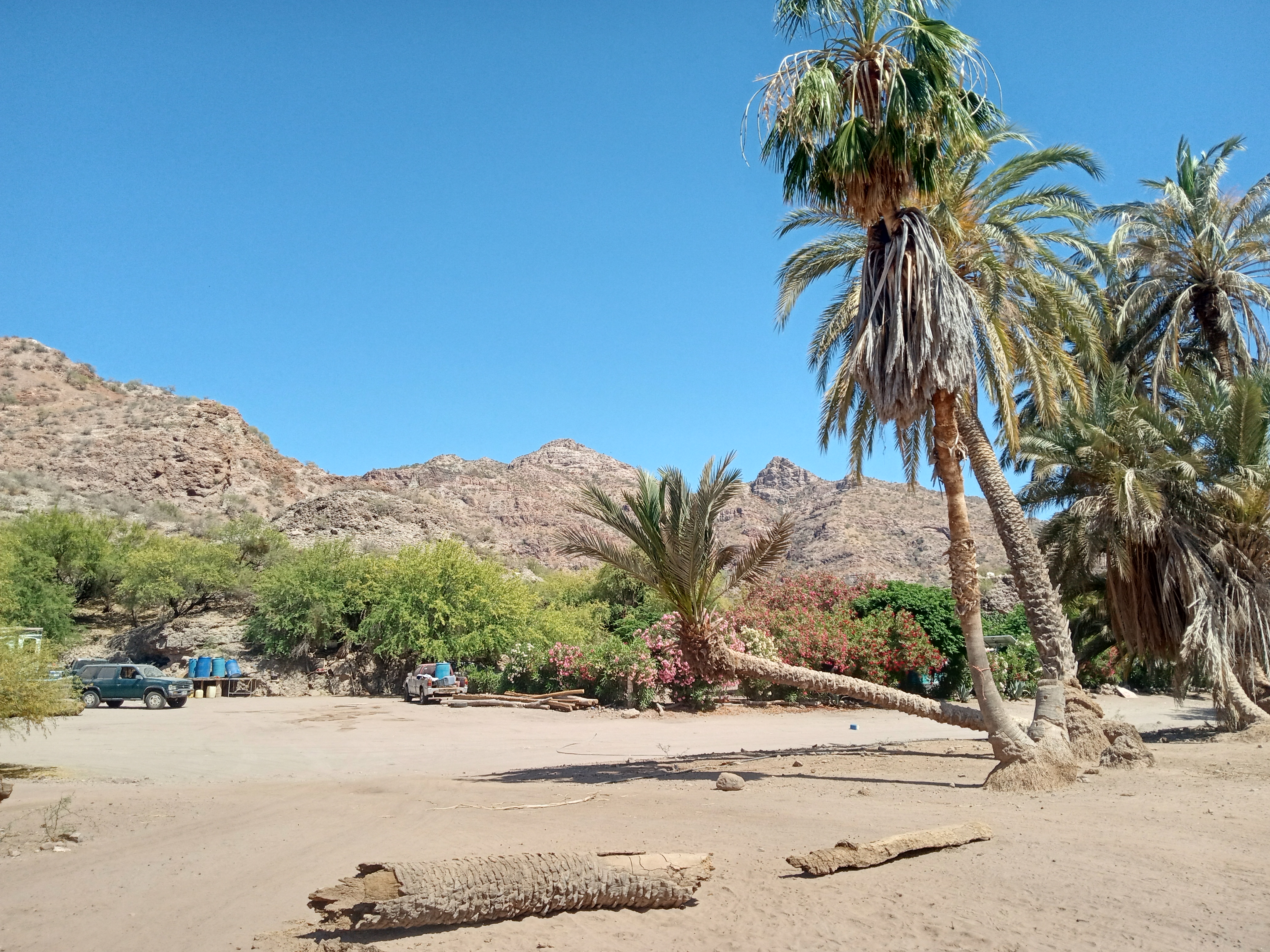 We motored the ten miles to San Evaristo, anchoring in front of the village. We were very close to shore and uncomfortably close to another boat, but the anchorage is quite small, and the area with any protection is even smaller so we hoped that we had set okay. That night, a Coromal kicked up about 10pm – these are very strong winds that funnel over the Baja from the Pacific side and come down the mountain face right into the anchorage. We were seeing winds gusting into the high 20’s. Owen had again set the anchor alarm and the radar alarm and had mirrored the wind instruments to his computer. I tried to go to bed at a normal time, but ended up sitting in the salon, watching the wind instruments, hoping to see the wind finally drop below 20, and keeping an eye on our position, relative to the boat we were anchored beside. It was a long night, with Owen snoring away in our cabin and me slowly descending into panic in the salon! Finally, about 4 am, the wind started to settle and I was able to head to bed. The next morning, Owen had the fun task of once again taking apart the toilet, this time actually taking hoses off and trying to knock out the disgusting calcium build up that kept plugging up the pump and hoses. The crew of Dos Rojos came by just as he was finishing up to see if we would like to go for lunch – the promise of a fruity drink was exactly what he needed at that moment and we happily agreed to meet them on shore in a bit. The lunch was excellent, though there was not a pina colada to be had and Owen had to settle for a coke!! We went back to the boat and I winched Owen up the mast so that he could finally change out the two broken blocks, allowing us to once again raise the dinghy from the spinnaker halyard. It was hot work and as soon as I had him back on deck, I was in the water cooling off. By the time we had gotten back to the boat after lunch, a number of other boats had arrived in the already crowded anchorage, with one of them setting themselves very close to our bow. We had a feeling it was going to be a bit of a problem in the night and sure enough, when the wind switched around, turning us all around, we could see that they had far less scope than us out and we were nearly bumping into their bow. They let out a bit more chain, pulling a bit further from us, but then when the wind died completely in the night, their boat, being much lighter than ours, started to drift forward on their chain, while our heavy beast stayed happily where she was. Sure enough, our radar alarm started to go off, signaling that a boat was much closer to us than we were comfortable with – when we went on deck they were nearly on top of us. We hung out and watched as we just skirted around each other for a while and then went back to bed, hoping that there would not be an actual collision. The other boat was long gone when we got up in the morning and it did not seem that there had been any contact.