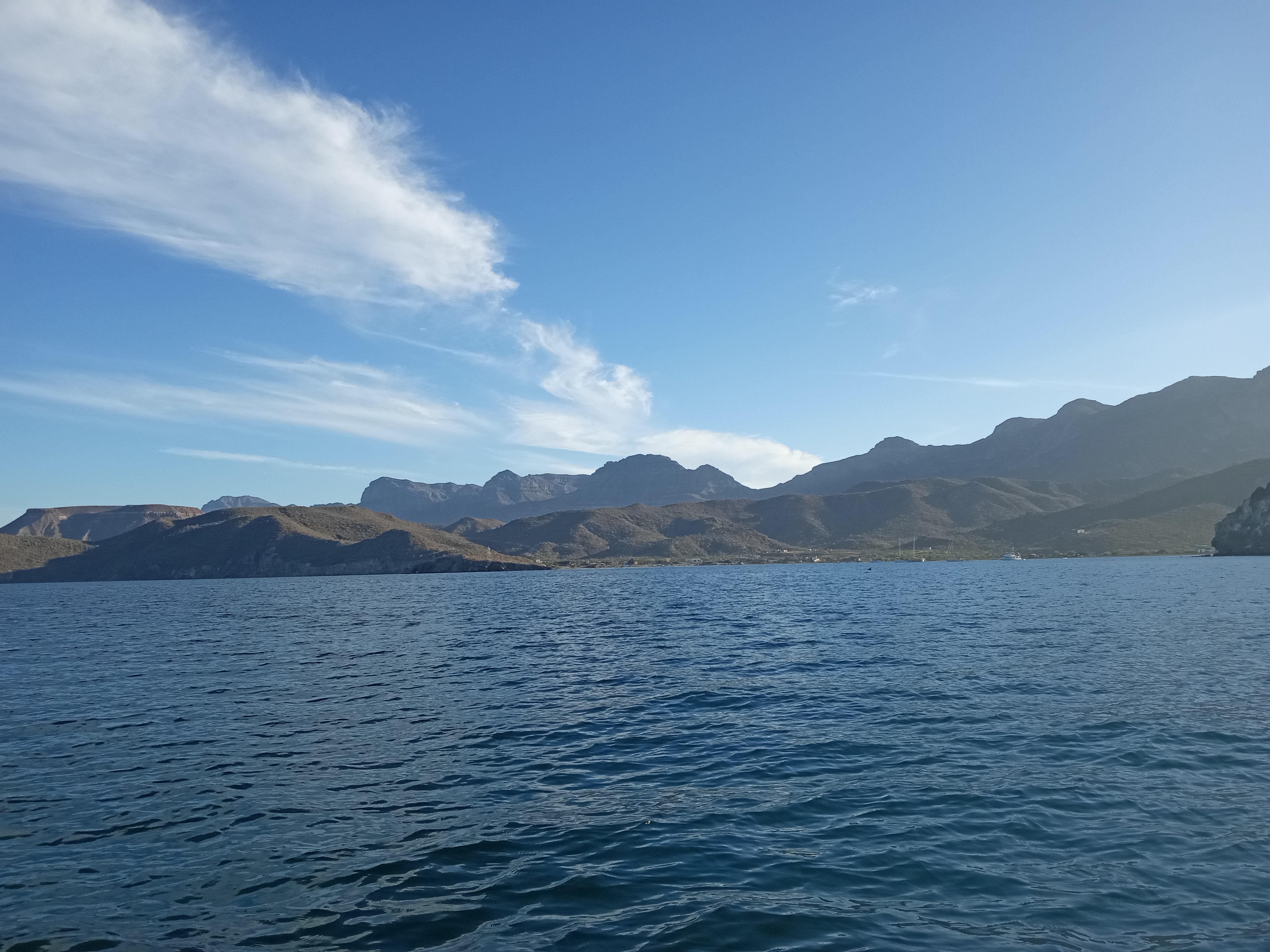 We left Bahia Falsa and headed back to the islands of Isla Espiritu Santo and Partida, still deciding where we were going to end up for the night. There was little wind to start, with the wind and waves gradually building from dead ahead. We were able to sneak out a headsail to give us a little more oomph to make it through the waves and continuously congratulated ourselves for getting some of the barnacles off of the prop – we were definitely moving faster!!