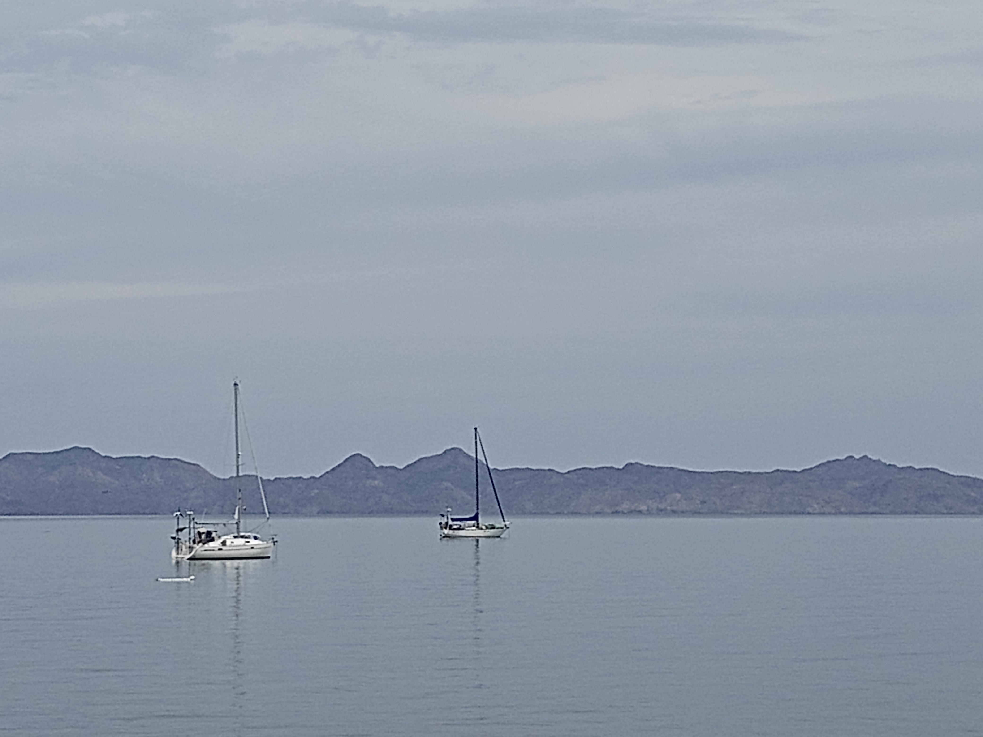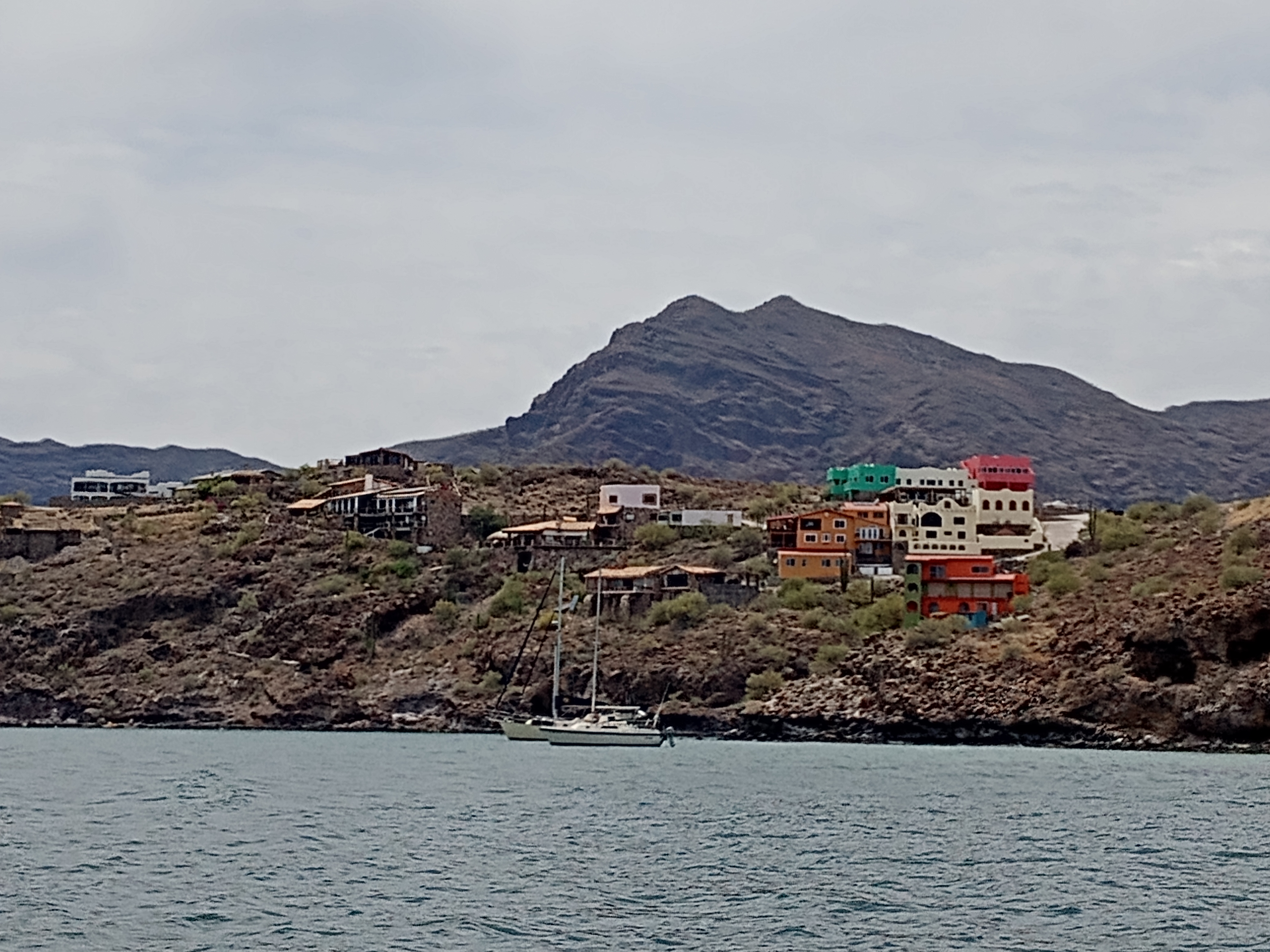 After two nights at Puerto Escondido we were ready to head out, stopping first to fuel up at the fuel dock (again – so expensive!) and made the small hop up to Loreto where we anchored just off the breakwater. We dinghied into shore and visited the API to pay our anchoring and landing fees and then wandered off into one of our very favorite little cities. We have previously done two fly-in trips to Loreto and loved our time there – it was one of the places I was so excited to get to on this trip. We walked along the Malecon and then headed to the town square where we stopped for some very deserved Pina Coladas before heading to the grocery store to stock up. Our plan had been to get groceries, run them out to the boat and then come back in for dinner at one of our very favorite restaurants. Unfortunately, by the time we were heading back out to the boat, a wind had picked up, building a pretty good fetch between the breakwater and our boat – we were soaked by the time we reached the boat and not excited about going back to shore and then having to head back to the boat in those conditions, in the dark. We decided to forego dinner in Loreto, sadly, and got the dinghy up in its bridle. I was popping up and down from the cockpit, cleaning the veggies and fruit we had bought, and noticed a tandem kayak heading into the wind and waves, trying to get back to shore. I pointed them out to Owen and commented that they had some work to get back in. A few minutes later, he looked over and realized that they were no longer in the kayak!!! He quickly launched the dinghy and motored over to where he had spotted them. Luckily, another boat had also seen that they were in distress and he had motored over to them as well. Our fellow cruiser was in a rather tippy, small tender – he had managed to get one of them into his tender, but the other person was being dragged behind, holding onto the overturned kayak. Owen got there just as they finally made it back to the other cruiser’s boat and helped to get the kayak up and drained out and then offered to take one of them into shore, while the other cruiser took the other person and towed the kayak. The kayakers were very grateful to accept that offer, being a little shaken from their experience and not wanting to try to paddle into the sea state at that time! Luckily the sea state settled a bit overnight and we had a pleasant night at anchor.