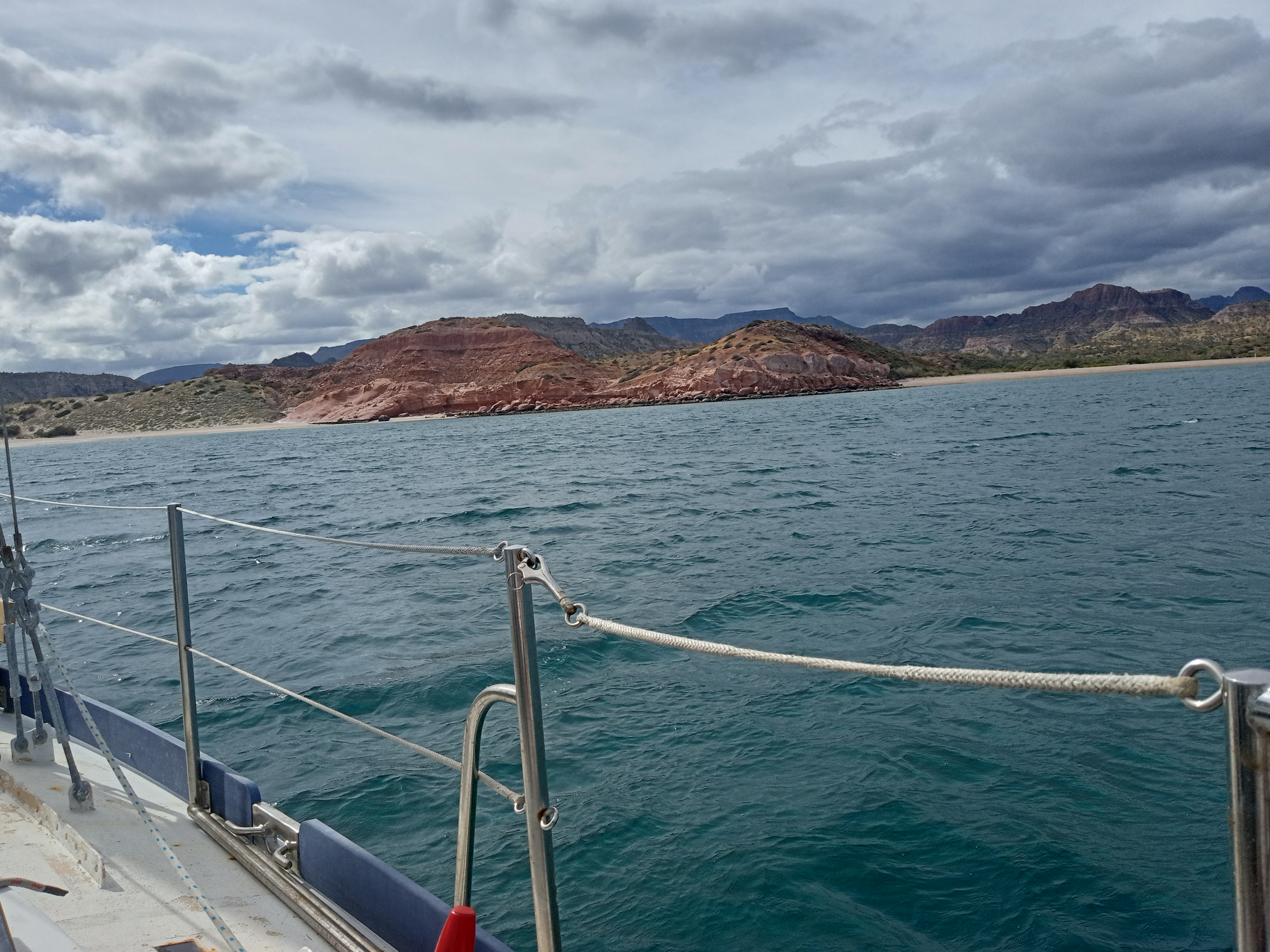 Keeping that in mind, we headed out the next day for a run down to Los Gatos – it is only when the wind is a bit stronger and the conditions fairly rolly, that you really notice how unprotected Los Gatos is!! We would have loved to have gone on a hike here – the red rocks are so cool – but the wind started howling right off the beach nearly the minute we set our anchor and getting the dinghy down didn’t seem like a good idea. Thankfully the wind that afternoon and evening was primarily from the west, meaning that, though we did get some wrap around swell, the conditions were not too awful. It was a bit rolly in the evening and I was not unhappy about setting out early the next day.