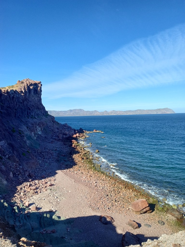 While checking in on emails and social media, I was surprised to realize that we were approaching the one year anniversary of our heading across to the mainland – it seemed that we might make that jump on the same date. The weather gods, however, had other ideas. The forecast was calling for a strong blow to occur, probably some time in the middle of our 2nd night at sea. We would be facing 30+ knots of wind – keeping in mind that the winds have been blowing for nearly a week and the sea state is a bit untenable already, we decided to take a more cautious path. We pulled the anchor about 10am on day 4, headed south to Isla Partida. We motor sailed for the first hour in order to charge batteries and then, with just the headsail out, we sailed through big, lumpy seas – often sliding down the side of a wave sideways – averaging 4.5 – 5 knots. We sailed almost right into Ensenada de Cordenal. We had been in this bay a couple of times last year – actually making a quick run down here when the conditions in Grande became too wild – so we knew that we would be comfortable here – even as the winds continued to blow.