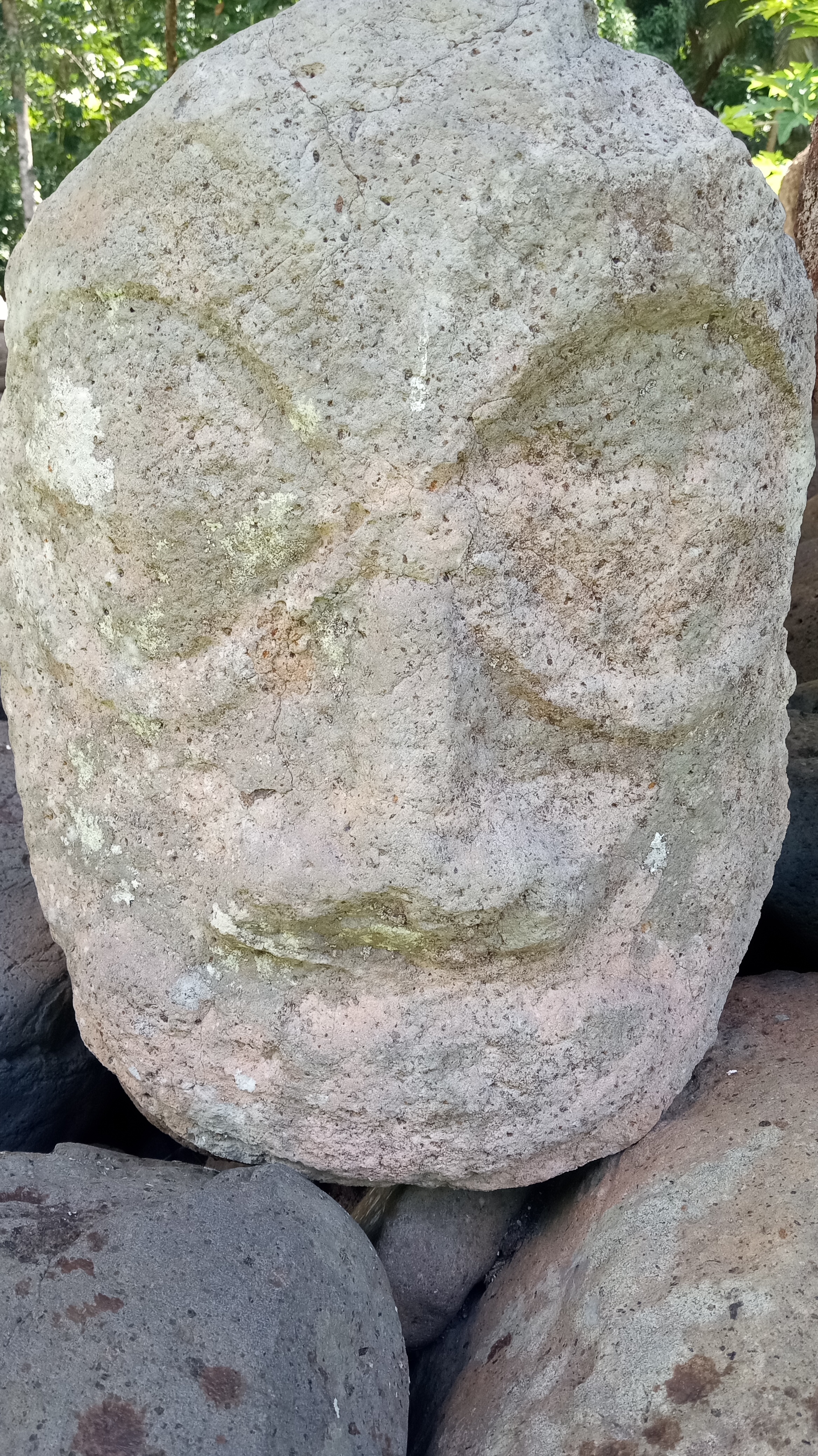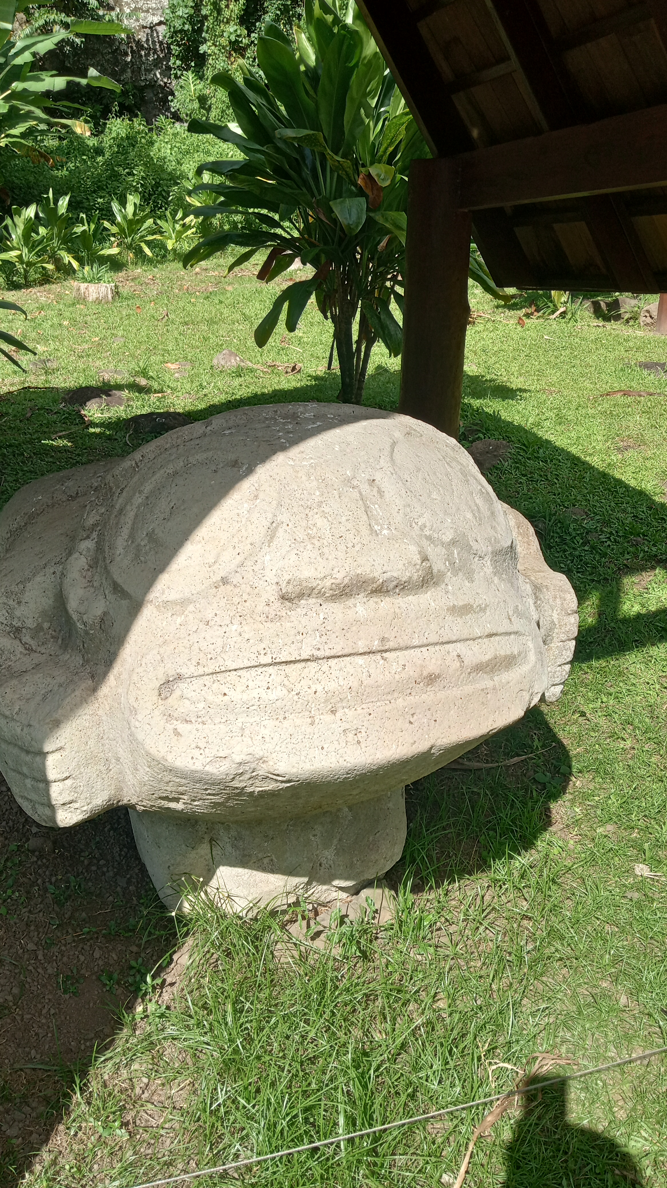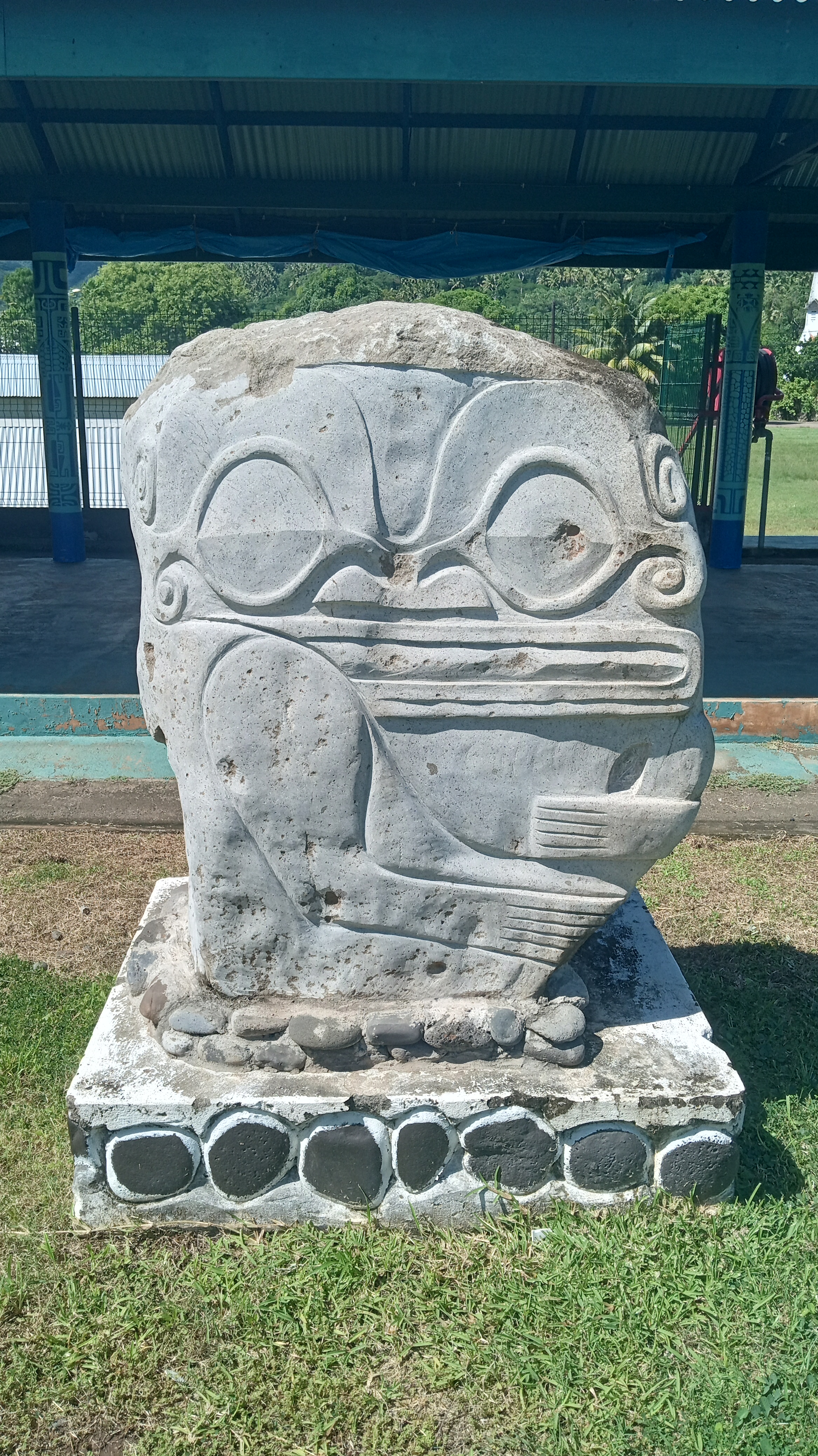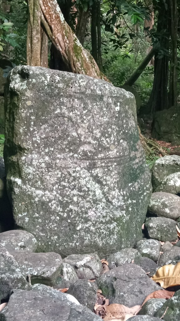 Our second trip to Atuona we were able to sneak a bit further into the harbour, though it was still quite rolly it at least made for a shorter, drier trip in the dinghy. On this trip, we tried to book a tour of the island, arranging it for the day before we intended to head out again. Unfortunately, the guide was sick the day we wanted to go and we weren’t able to reschedule with him because we were heading out on a good weather window. Instead, we decided to rent a car and tour the Island ourselves. We did make it to the sites that we would have seen on a tour and were able to google for information on some of them. Owen loved the windy drive (me not so much!) and it was stunning to see the lush diversity of greenery on the island – from palm trees to banyan trees and everything in between. We managed to make it from one end of the island to the other before returning to the boat having seen an ancient village site (where human sacrifices were performed) and a number of tikis.