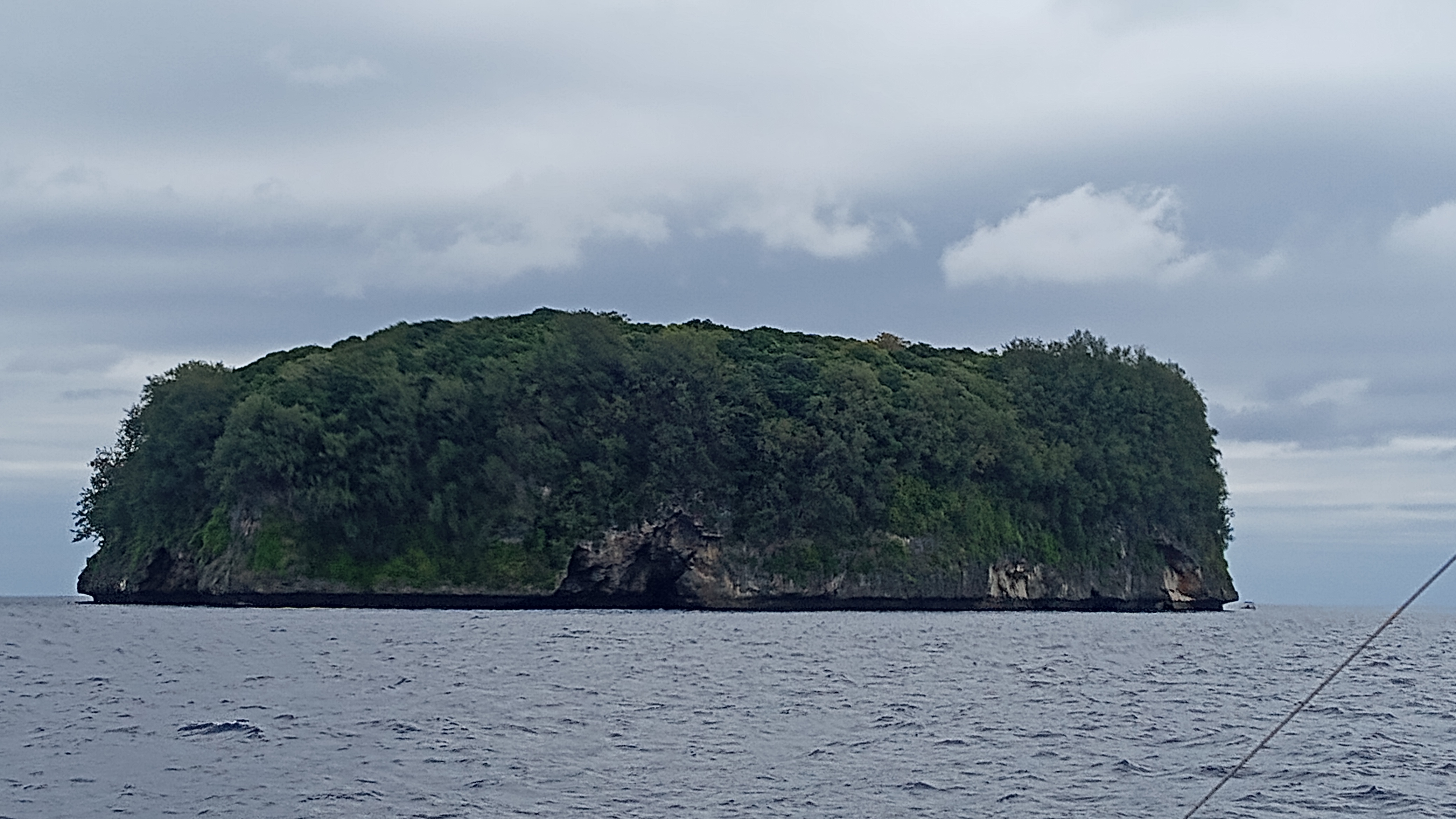 In looking at the charts, we realized that we were almost due north of the last of the French Polynesian Islands, Maupihaa – a very small atoll in the middle of the Pacific. We altered course for the 70 mile trip down to Maupihaa. We were a bit nervous with this plan – if we didn’t make it to Maupihaa before the wind filled it would be nearly impossible to get in through the very narrow, shallow pass. In that case, we would be hundreds of miles from the nearest safe harbour and would likely just have to batten down and suffer through the system. As it was, we arrived mid-afternoon and in good weather – we lined up the pass on the chart and started to approach – it was so hard to see where we were to go in – it seemed that waves were crashing directly across the pass. We were slowly approaching where the pass should be when I noticed something in the water – at first, I thought it was a small fishing boat – then suddenly, it became apparent that it was a whale – just drifting around near the entrance. We had seen a humpy breaching just a few minutes earlier but this one, and as it turned out, a smaller one, were just swimming around, enjoying the choppy conditions. They both dove and we thought they were going to head right across the front of the pass – so we did a quick turn around and then slowed right down – waiting for them to surface to confirm that we weren’t going to run into them as we made our way to the pass. We waited a few minutes with no sign of them and finally had to just hope they weren’t lingering in our path. We were looking at each other saying that we didn’t even want to try entering this pass – but the alternative, riding out the storm outside, was even worse. We finally noted that we had to enter on a bit of an angle and, taking a deep breath, we picked up our skirts and headed in through the pass. The pass felt insanely narrow (I actually wondered how catamarans were actually making it in!) and so shallow! We finally made it through the pass, making a sharp turn just as we entered to avoid a bommie and them slowly followed the path through the bommies, that was thankfully well charted on Navionics, to make our way to the North anchorage. We knew we would likely want to be in the South anchorage to reduce fetch but there were several other boats in the north and daylight was slowly ebbing so we dropped the hook for the night. We had a brief visit from one of the other boats, confirming that everyone was going to be moving the next morning.